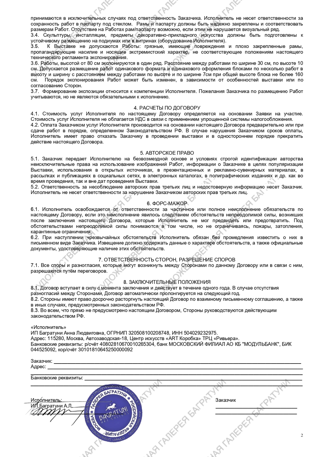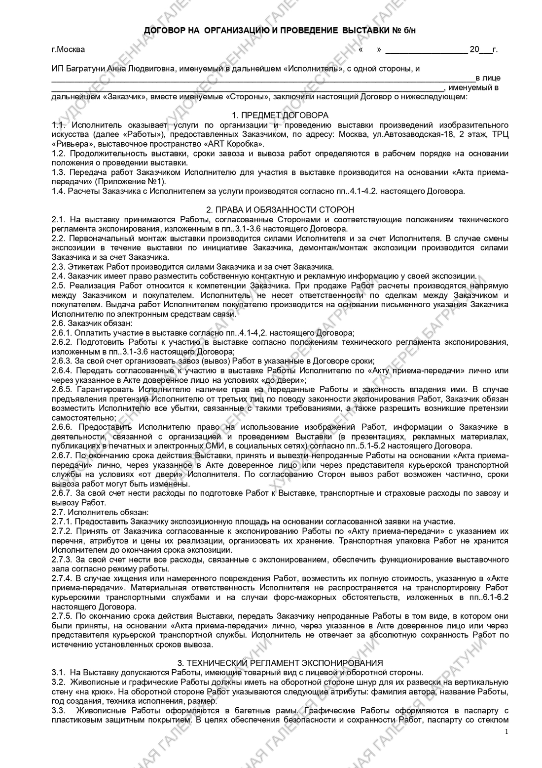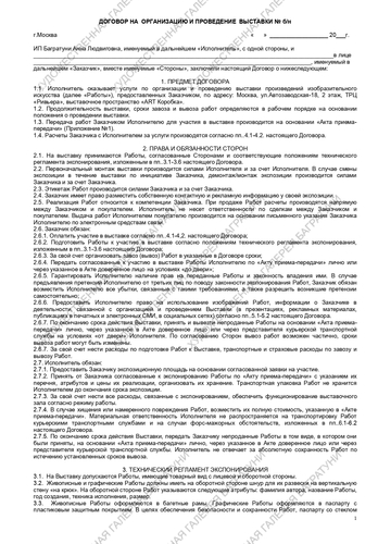 ДОГОВОР НА УЧАСТИЕ В ВЫСТАВКЕ