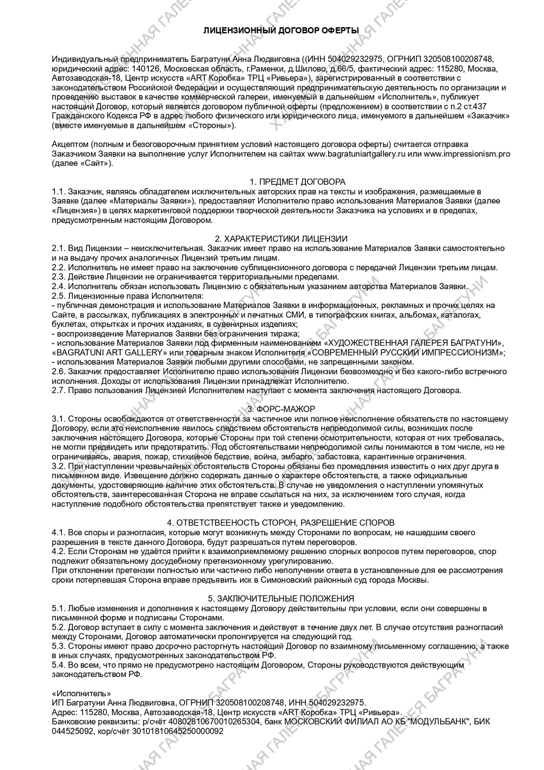 ДОГОВОР ОФЕРТЫ НА ПРЕДОСТАВЛЕНИЕ АВТОРСКОЙ ЛИЦЕНЗИИ